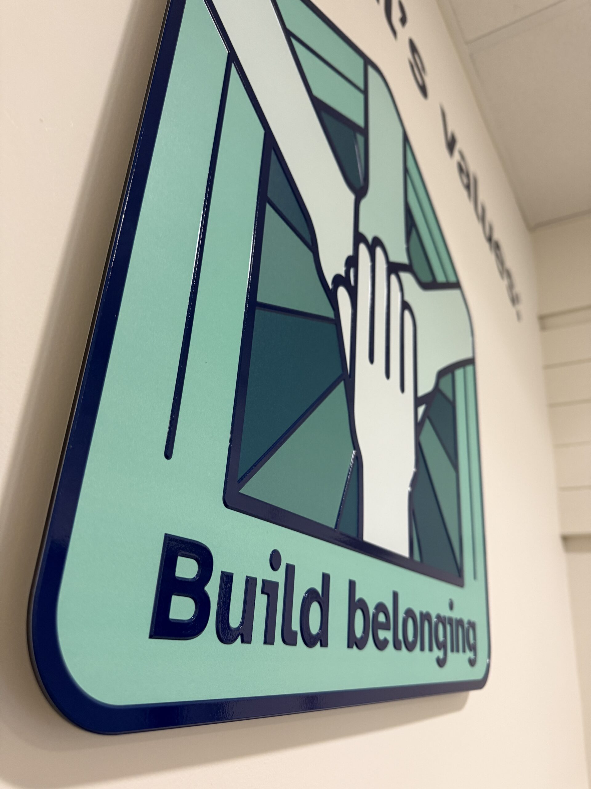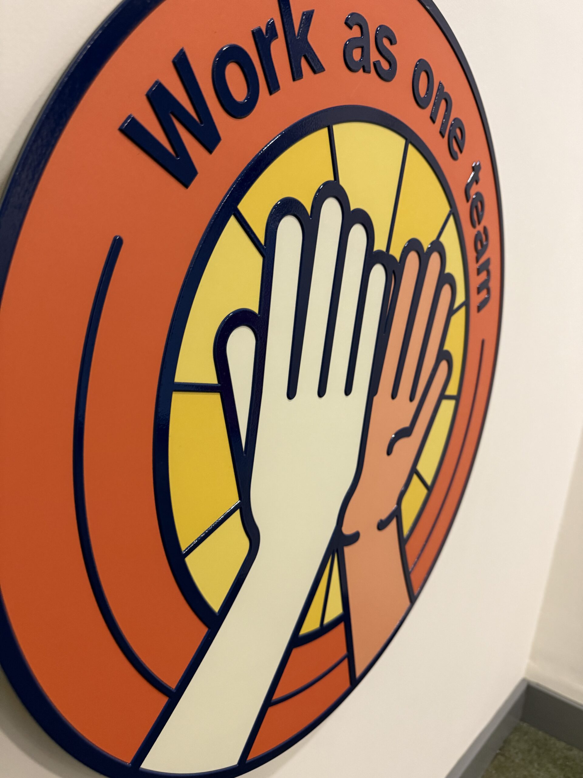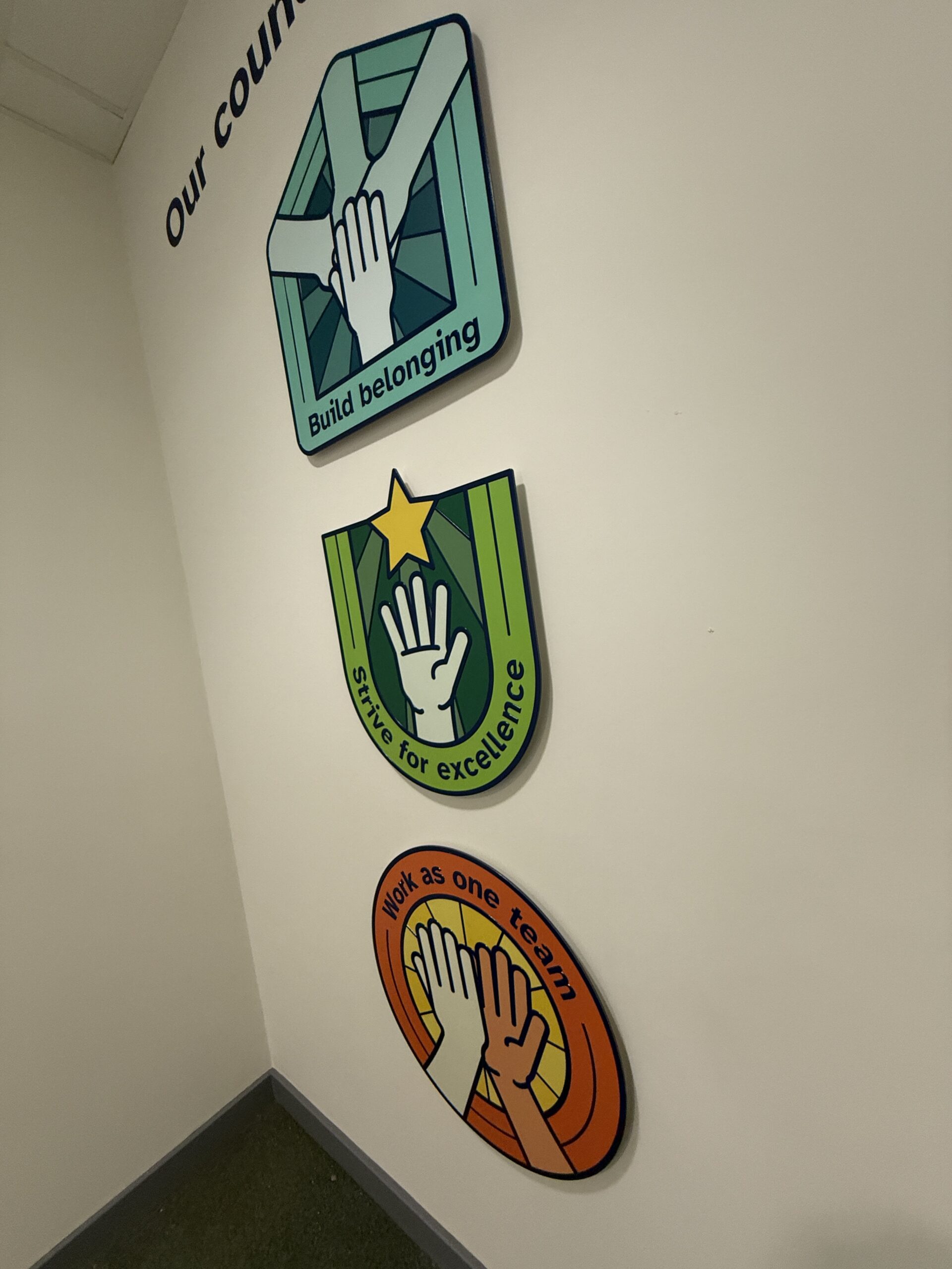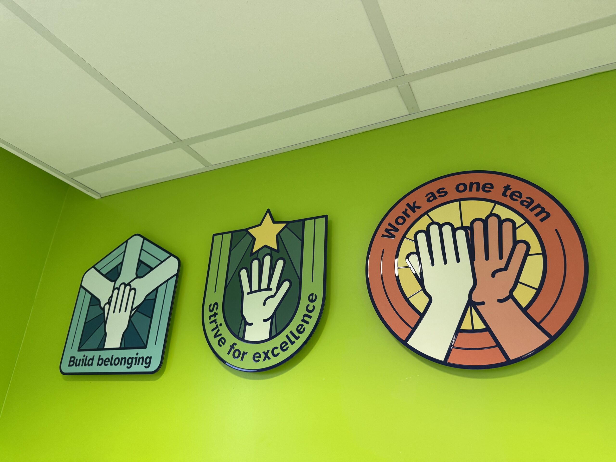 Once the main installation was approved, we created smaller sets featuring three core values for each breakout area across the building, ensuring consistency, visibility, and a genuine sense of pride in the workspace. Our team manufactured everything in-house and completed the installation on-site in Taunton. Seeing the reaction from the Somerset Council team as the graphics went up was fantastic.